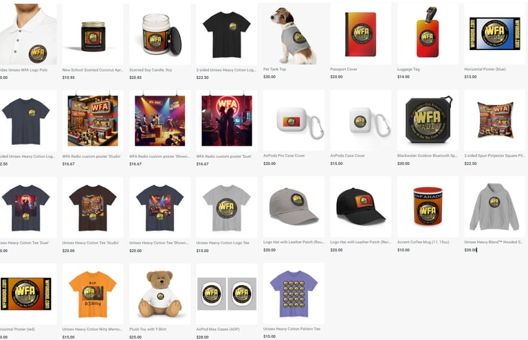 - Buy WFA Radio merchandise from our Printify site.