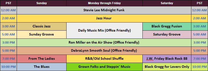 Thanks for helping us keep it clean! If you hear music that is not appropriate during the ‘office friendly’ time slot, please send us an email with the name of the song and the time it was played (PST) and we will remove it from the playlist.